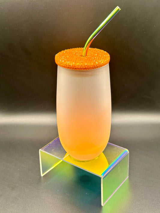 16 oz Color Gradient Glass Cup with Rhinestoned lid
